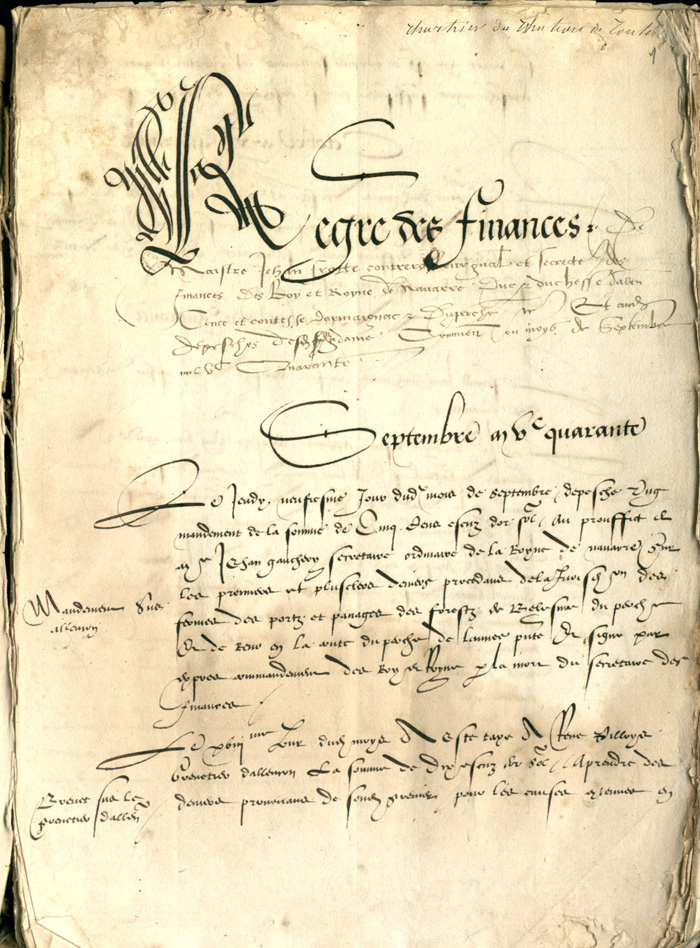 f. 1 - [Note ms.] - Registre 1 / Septembre 1540 / Alençon - Brevet